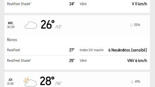 În majoritatea zilelor, temperaturile vor coborî sub 29 de grade ziua, iar noaptea vor ajunge la 15-16 grade.