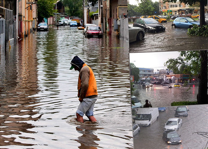 Dezastru in capitala, dupa ce a plouat cu 15-20 l/mp. Mai multe strazi au fost inundate, dupa ce canalizarea nu a facut fata debitului mare de apa. Metroul nu circula, statia Piata Victoriei fiind inundata.
