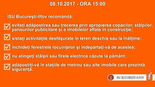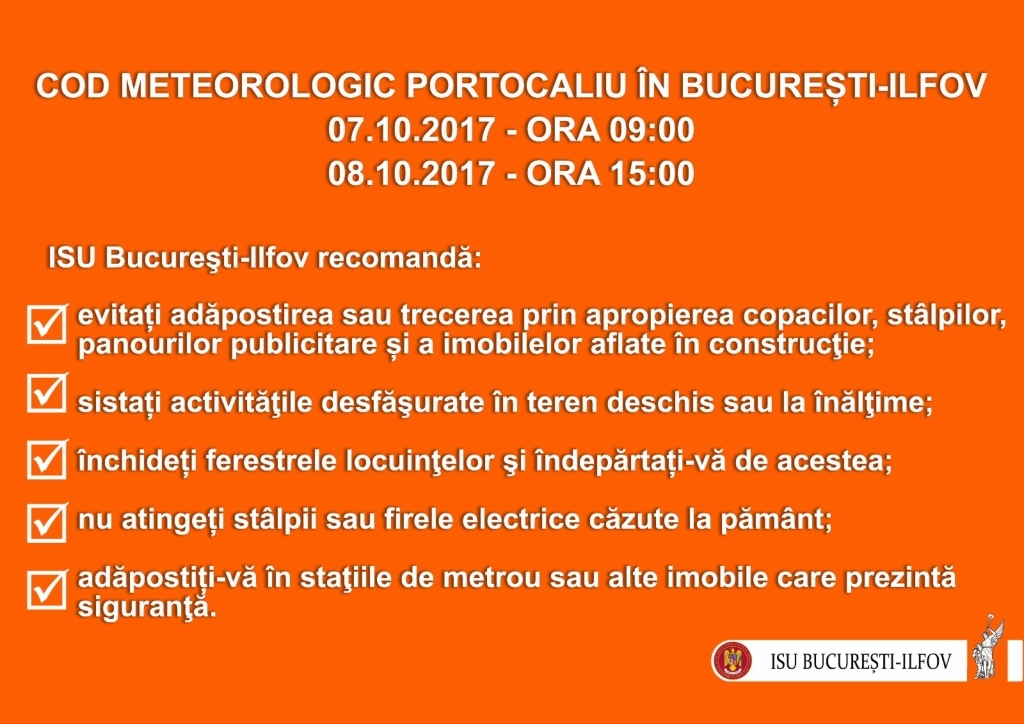 Ei le-au transmis oamenilor cum sa se protejeze in orele in care Bucurestiul se va afla sub avertizare de cod portocaliu de furtuna. Ei recomanda oamenilor sa isi instaleze pe telefoanele mobile aplicatia DSU pentru avertizarea populatiei. Aplicatia poate fi donwloadata din Google Play sau iTunes.