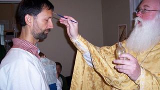 „Pentru ca aici este mintea, aici este creierul nostru, au loc deciziile si de acea ne rugam la dumnezeu ca prin uleiul sfintit sa lumineze mintea noastra”, mai spune preotul.