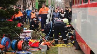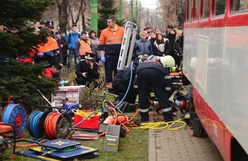 Eleva de 12, prinsa, joi, sub rotile unui tramvai intr-o statie din municipiul Arad este internata la Spitalul Clinic Judetean de Urgenta Arad.