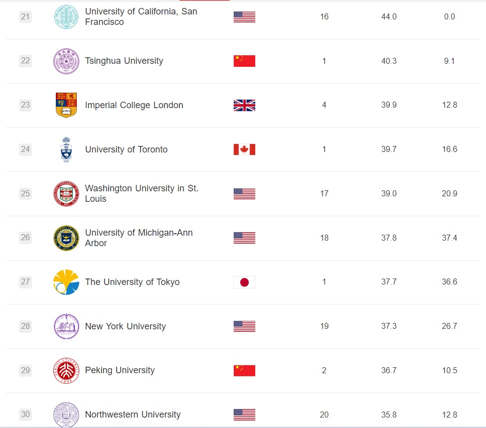 Universitatea Paris-Saclay a fost cea mai bună instituție de învățământ superior din UE, pe locul 15, în timp ce cea mai bună instituție asiatică a fost Universitatea Tsinghua din Beijing, pe locul 22.