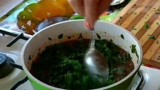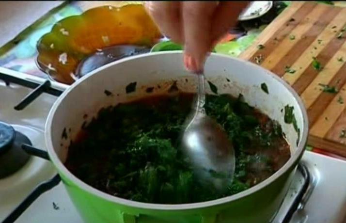 Sosul se ingroasa cu o mana de orez si un praf de condimente. Bucatareasa toaca marunt si fara frica planta care pana acum o ora era "viteaza"! Locul urzicilor e acum peste ceapa calita cu suc de rosii!