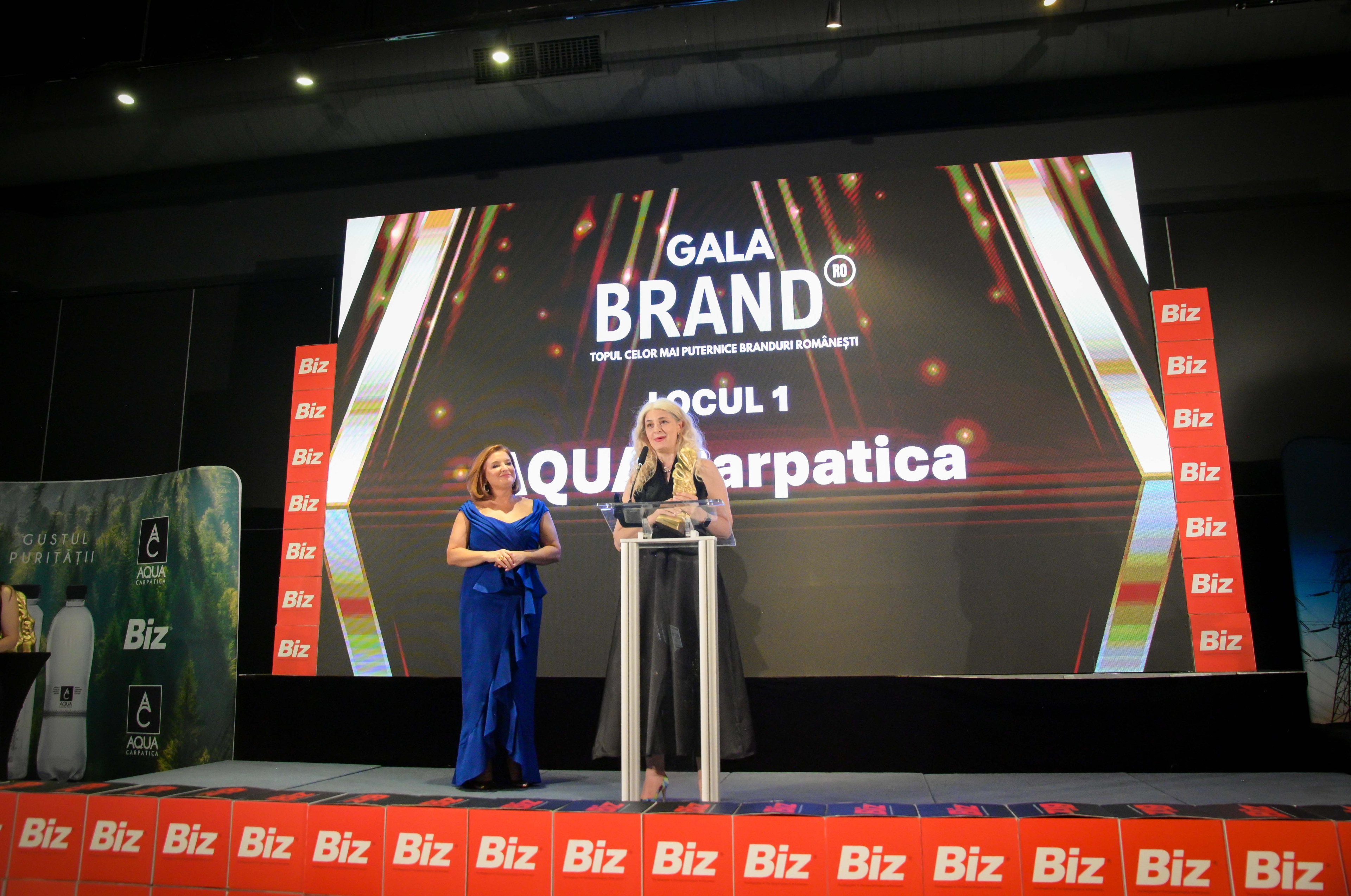 Primul loc în Topul BrandRO 2025 este ocupat în premieră de AQUA Carpatica, cel mai puternic brand românesc în acest an. Trofeul a fost decernat de Marta Ușurelu, owner Biz, care l-a înmânat Valentinei Vesler, Director de Comunicare și PR Valvis Holding.