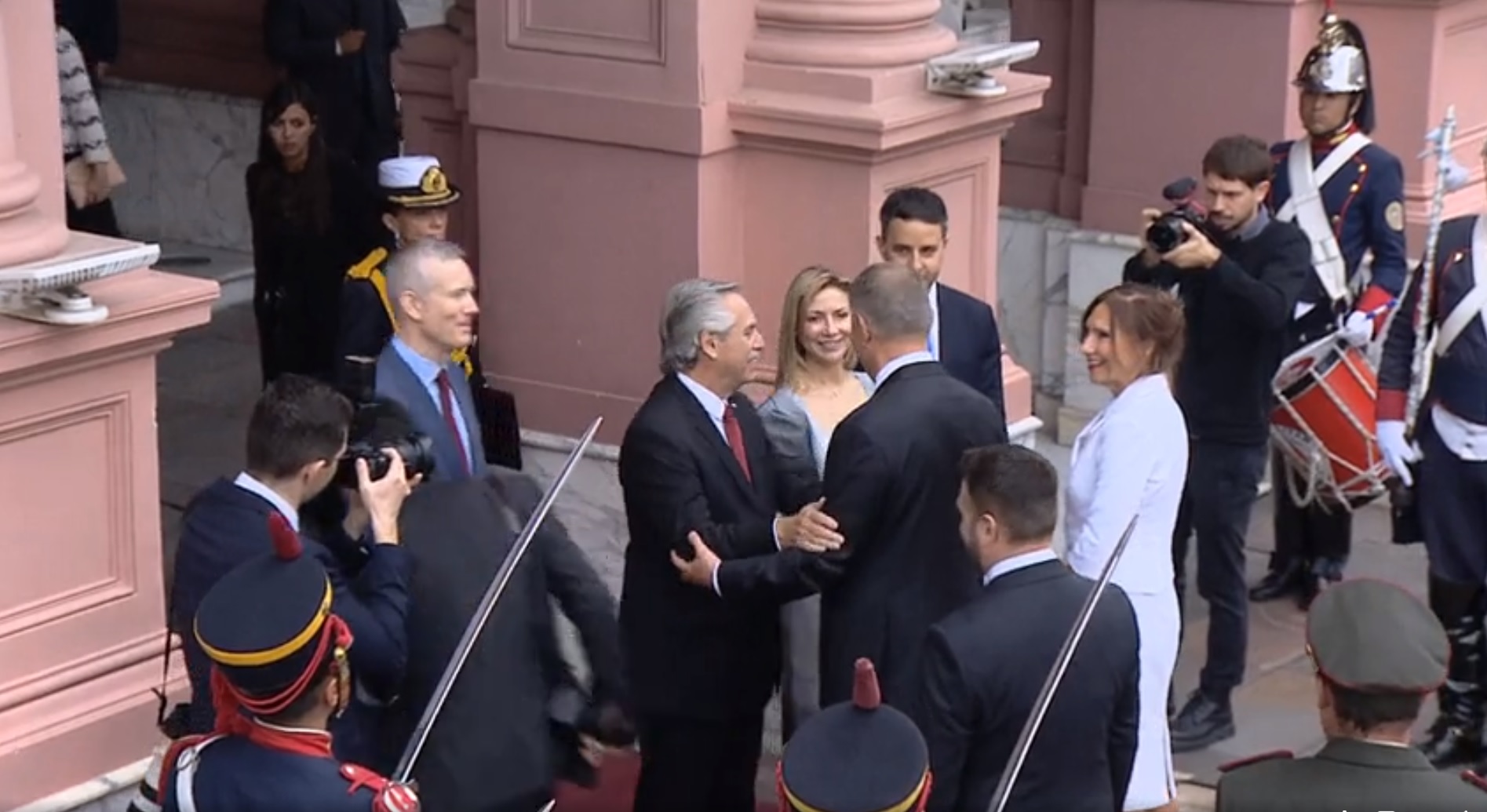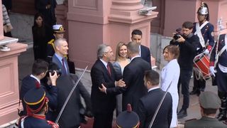 În imaginile publicate de administrația prezidențială de la Buenos Aires, se vede cum cei doi soți coboară din mașini diferite și se întâlnesc pe covorul roșu de la intrarea în Casa Rosada.