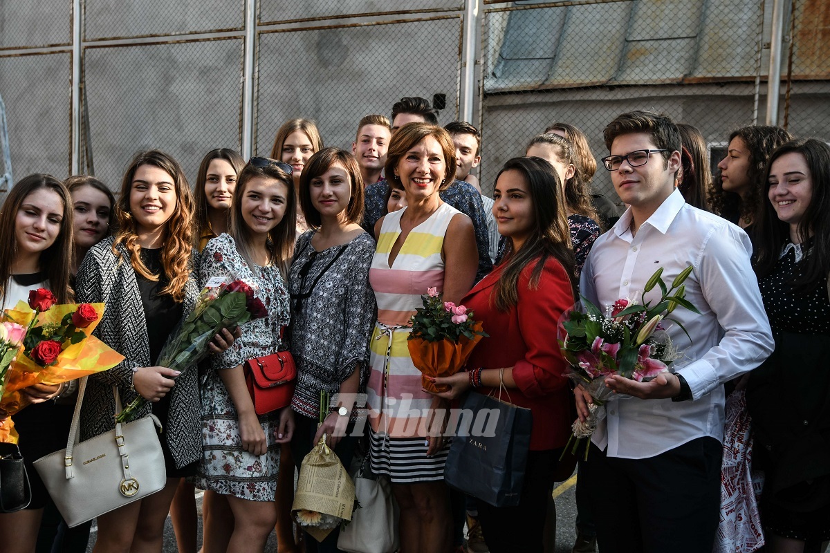 2 din 3 | Carmen Iohannis si-a intampinat elevii de la Colegiul "Gheorghe Lazar" la deschiderea anului scolar