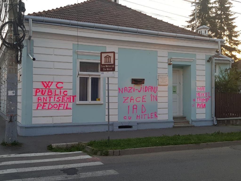 Autoritatile au fost sesizate la 112 ca pe peretii exteriori ai casei memoriale a scriitorului Elie Wiesel, decedat in 2016, au fost mazgalite cu vopsea cateva mesaje. Cu un rosu intens, pe imobilul din Sighetu Marmatiei a fost scris ”WC public antisemit pedofil”, ”Nazi jidanu zace in iad cu Hitler” si ”M… Merkel plus Trump si Putin”.