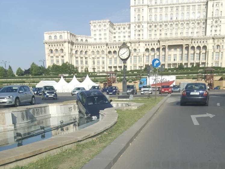 Un sofer a plonjat cu masina, luni dimineata, intr-una dintre fantanile arteziene de la Piata Unirii din Capitala. Potrivit politistilor, el nu a fost inca identificat.