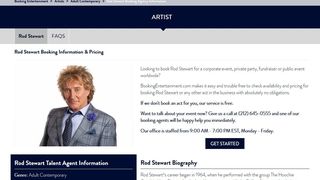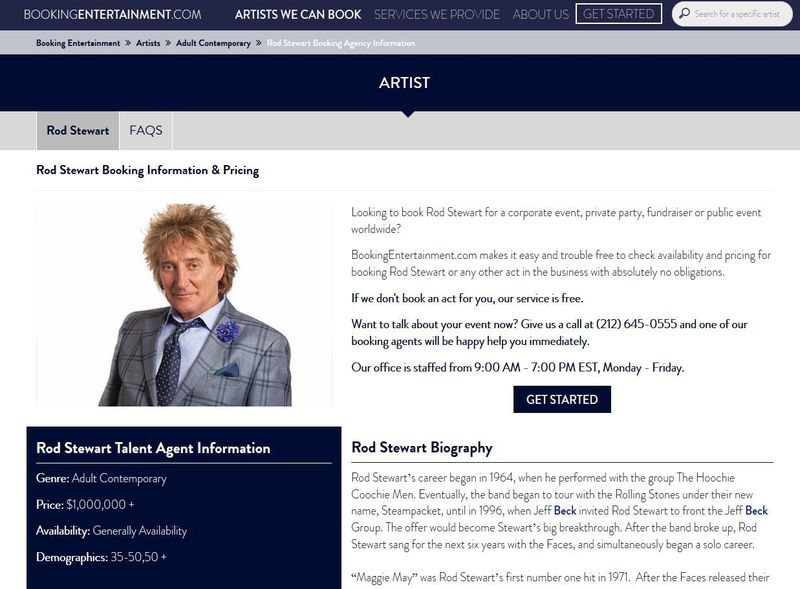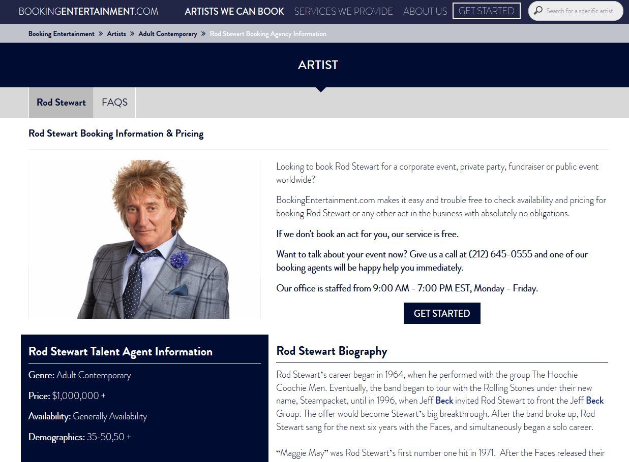 Oficial, Rod Stewart are un onorariu urias, aflandu-se in top 10 cei mai scumpi artisti din lume. Publicatia Business Insider scria in 2014 ca Rod Stewart se afla in compania selecta a artistilor mondiali care au tarife cuprinse intre 1.000.000 dolari si 1,5 milioane dolari, alaturi de: Aerosmith, Andrea Bocelli, Billy Joel, etc. De asemenea, pe site-ul bookingentertainment.com, considerat unul de referinta, Rod Stewart are un tarif care pleaca de la 1.000.000