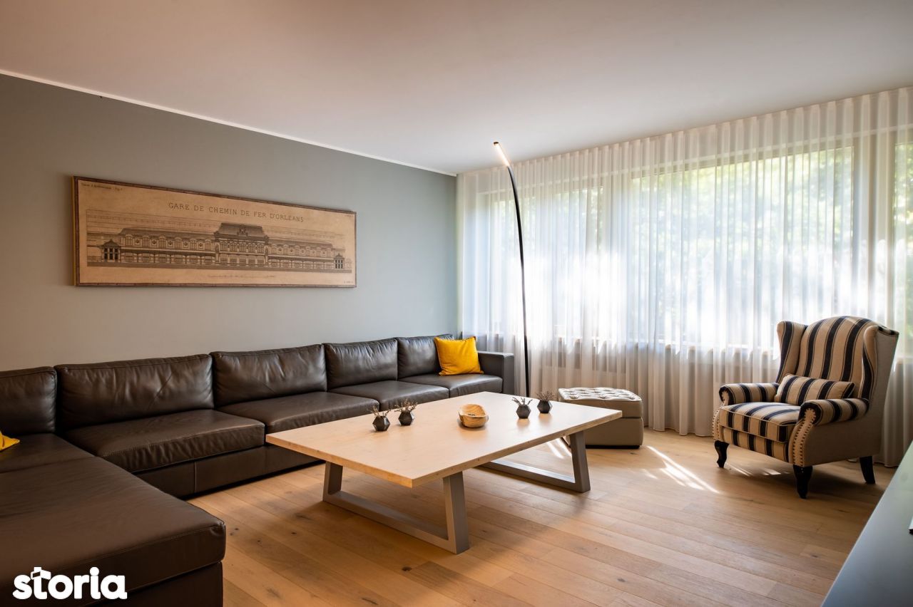 Un apartament de lux este scos la închiriere în zona Kiseleff, dar prețul solicitat este accesibil doar celor cu dare de mână. Cu o suprafață construită de 290 de metri pătrați și una utilă de 204 metri pătrați, cu patru camere decomandate și tot atâtea băi, acest penthouse este amplasat la etajul 3 al unui imobil ridicat în 1970. Fiind situat la ultimul nivel, apartamentul beneficiază și de o terasă absolut superbă, amenajată în stilul unei grădini urbane.