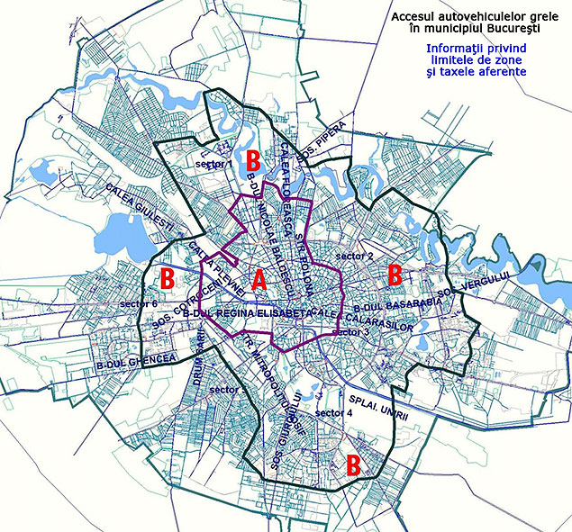 Zona A= Bd. Dacia, Str. Traian, Str. Nerva Traian, Bd. O.Goga, Pasaj Mărăşeşti, Bd. Mărăşeşti, Str. Mitropolit Nifon, Bd. Libertăţii, Calea 13 Septembrie, Şos. Pandurilor, Şos. Grozăveşti, Şos. Orhideelor, Bd. Dinicu Golescu, Piaţa Gării de Nord, Calea Griviţei, Şos.