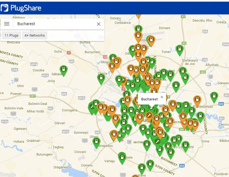 Cei care intenționează să își achiziționeze o mașină electrică în București, pot consulta aplicația PlugShare.com pentru a găsi toate stațiile de încărcare electrică din Capitală, din țară și din străinătate. Așa arată harta punctelor de alimentare în București: