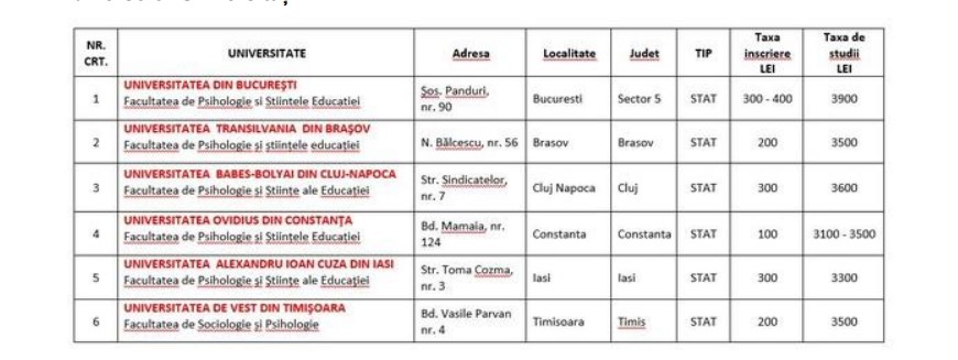 4 din 5 | Taxă de admitere și de studii la Facultatea de Psihologie și Științele Educației.