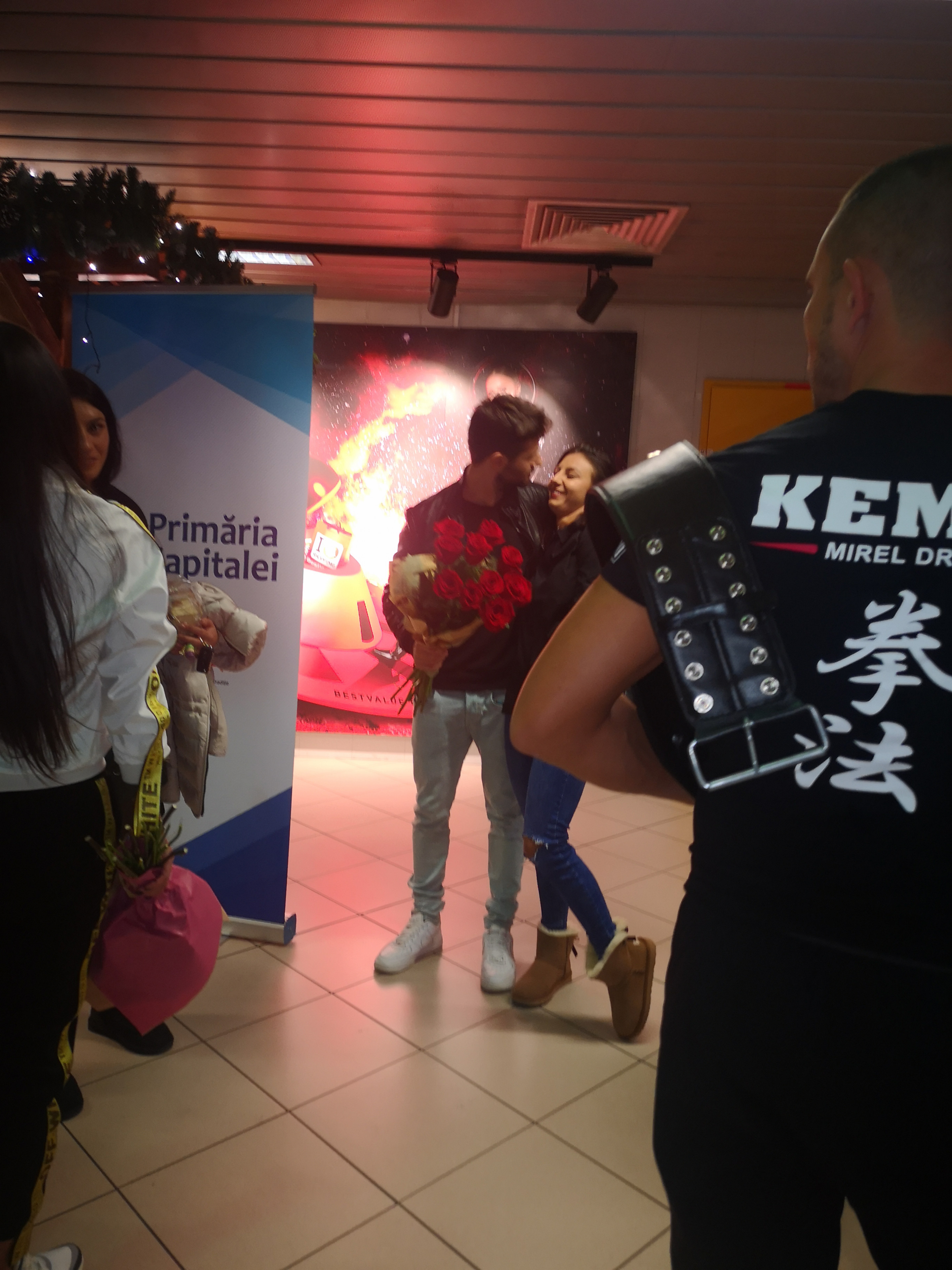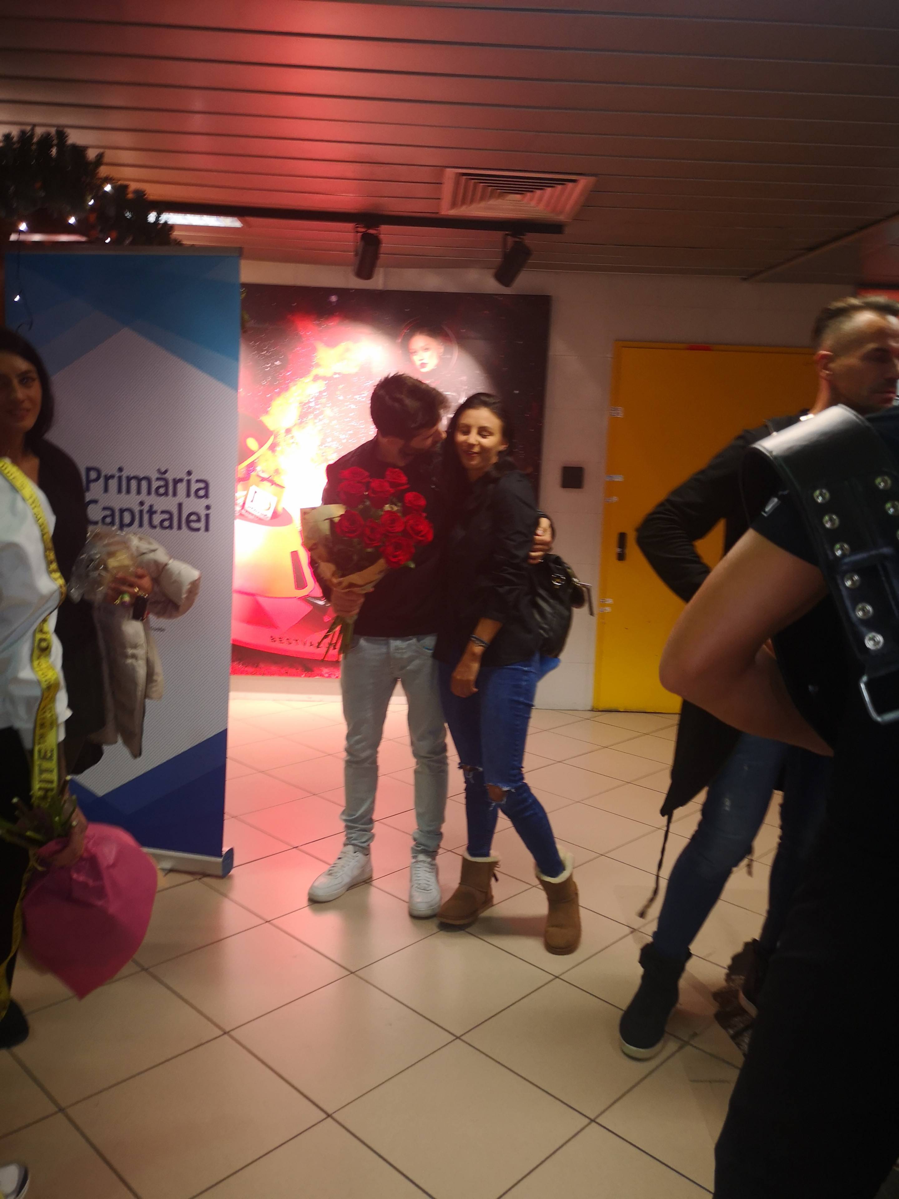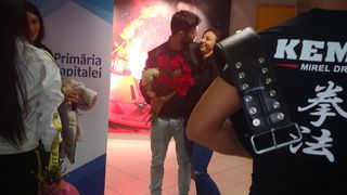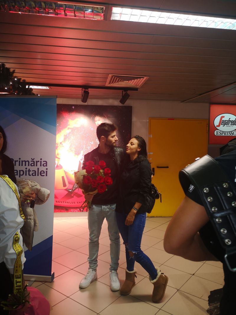 Cristina, zâmbindu-i larg, i s-a aruncat în braţe şi s-au sărutat. Scurt, pentru că lumea o asalta pe Cristina cu întrebări despre Exatlon, toţi voiau să ştie cum se simte, dacă problemele de sănătate sunt grave. El, continuând să zâmbească face un gest pe care doar un îndrăgostit îl poate face pentru persoana de lângă el: o lasă pe Cristina să se desprindă din îmbrăţişarea lor şi, ţinând în continuare buchetul ei de flori în mână, discret, se retrage puţin, să o lase pe Faimoasă se se ”desfăşoare”.