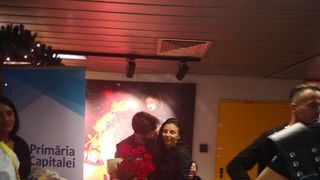 În sfârşit, zâmbea şi el. Cristina Nedelcu, cu paşi mari, hotărâţi, s-a dus spre el, iar iubitul multiplei campioane la gimnastică, i-a întins, fără să spună nicio vorbă, ca un elev de şcoală care îşi face curaj să zică ceva în faţa celei mai frumoase fete din clasă, buchetul de flori.