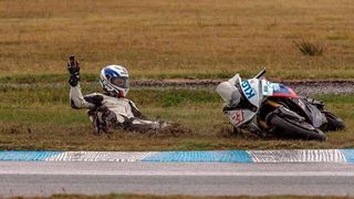 Catalin Cazacu a cazut cu motocicleta in calificari, la circuitul Serres, Grecia, insa sportivul roman s-a ridicat si a incheiat cursa.