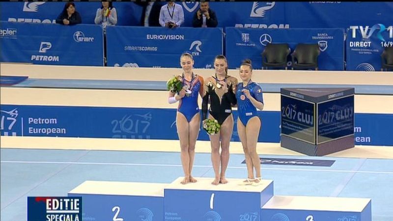 3 din 4 | Catalina Ponor - medalie de aur, Larisa Iordache - bronz la barna, la Campionatele Europene de la Cluj-Napoca. Momente emotionante pe podium