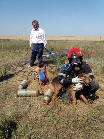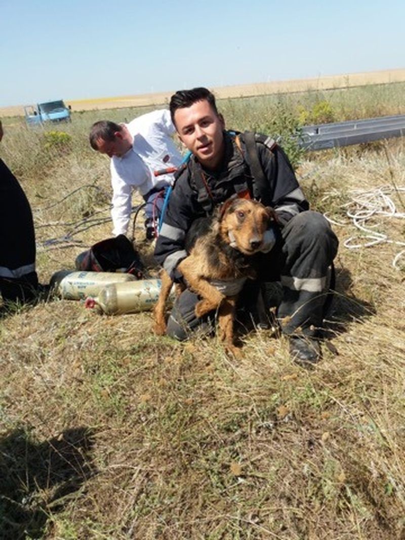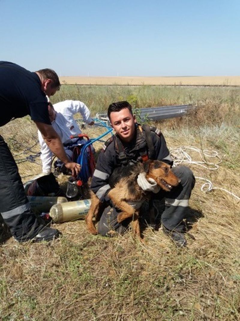 6 pompieri din cadrul Detasamentului Medgidia au intervenit cu o autospeciala de stingere pentru salvarea unui catel, cazut intr-o fantana, la aproape 20 m adâncime.