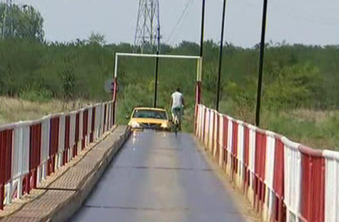 Un real pericol atat pentru cei care se incumeta sa circule pe acest pod, cat si pentru oamenii care locuiesc in apropiere. Soferii dau de fiecare data un test de prudenta.