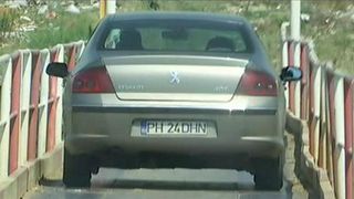 Barbatul din imagini nu a exagerat cu nimic. La doar cativa kilometri distanta, un alt pod cel putin la fel de ingust trece peste raul Teleajen.