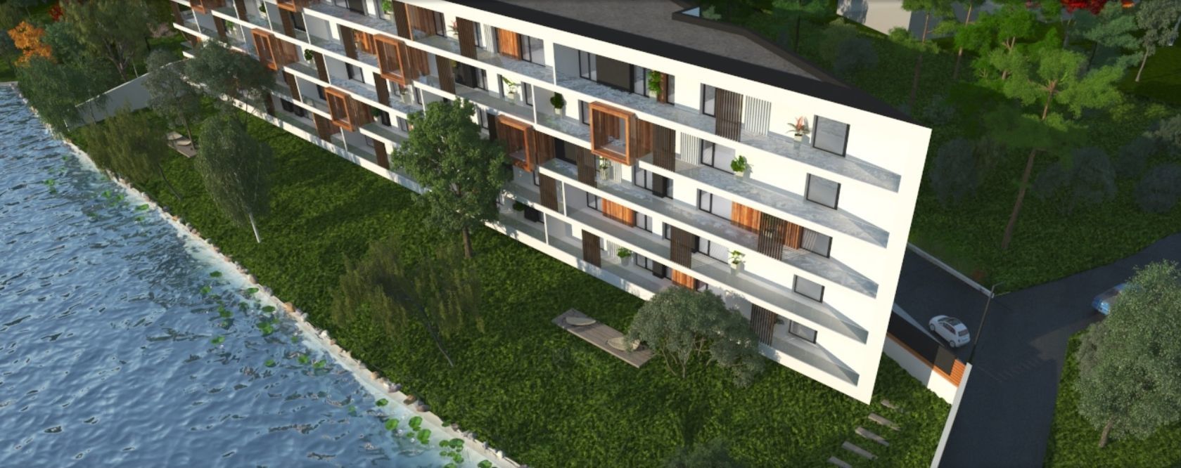 de euro+TVA, cu 3 camere, de la 102.999 euro+TVA, şi cu 4 camere, de la 139.999 euro+TVA. Fiecare apartament din complex are câte o terasă, cu suprafeţe variabile între 15 metri pătraţi şi 110 metri pătraţi.