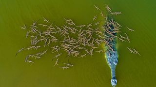 Câți crocodili poți vedea în această imagine? Cam o sută, probabil. Nu e un test de perspicacitate, nici de verificare a acuității vizuale, ci una dintre fotografiile înscrise în cea mai importantă competiție foto dedicată lumii sălbatice.