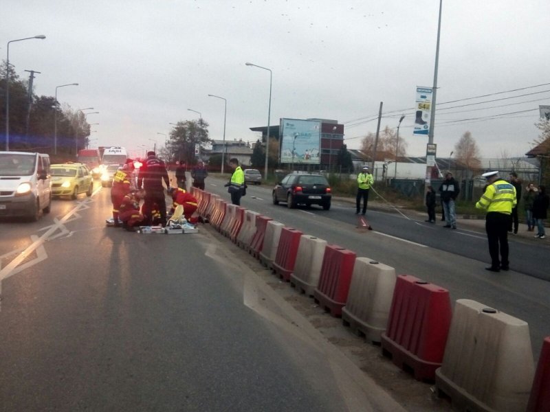 O femeie de 42 de ani, asistentă medicală, şi soţul ei Bogdan au fost loviţi de un autoturism în timp ce traversau regulamentar o stradă din oraş.