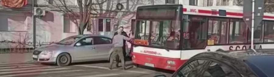Bărbatul s-a așezat apoi pe o trecere de pietoni și a blocat toată circulația. Un instructor auto a încercat să îl mute pe trotuar, însă bărbatul l-a lovit cu piciorul în stomac.