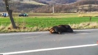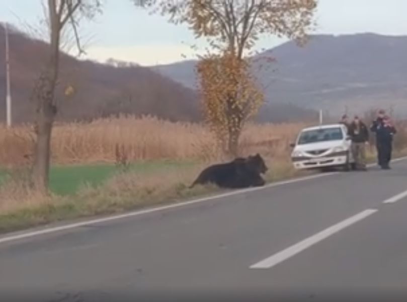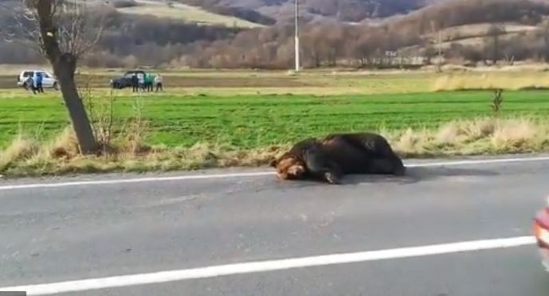 Ursul lovit de mașină a fost eutanasiat, după ce a agonizat toată noaptea. Avea 3 picioare fracturate.