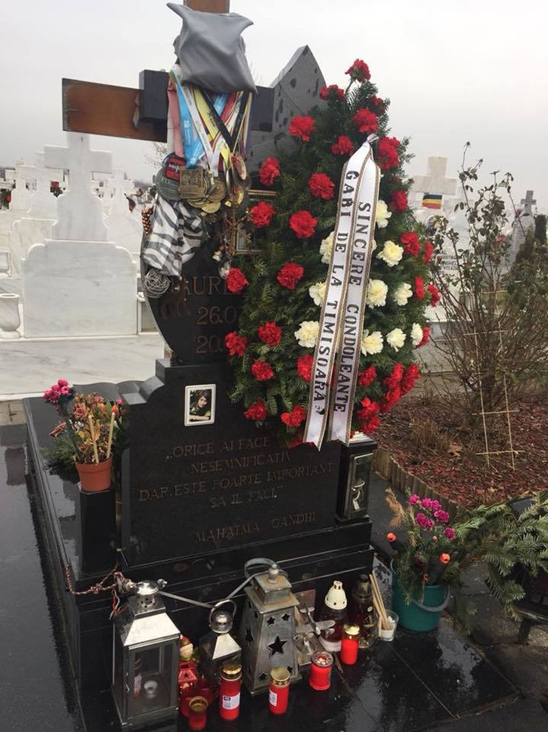 2 din 5 | Ce a aparut la mormantul Aurei Ion, la 4 ani de la tragedia aviatica din Apuseni! Pe cruce sunt atarnate medaliile cucerite de surorile sale la cursele de atletism!