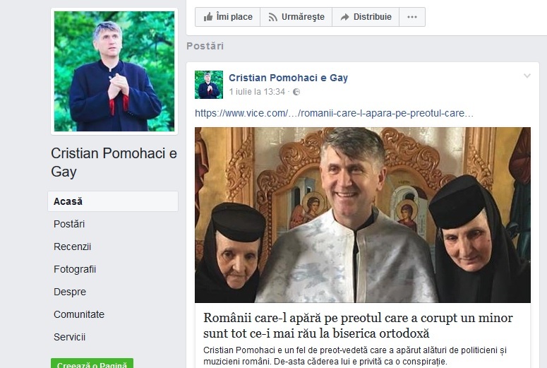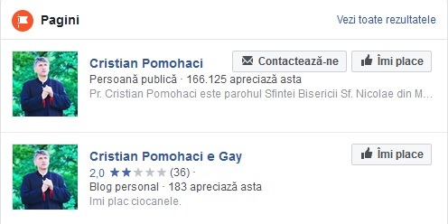 Desi a preferat sa se tina departe de retelele de socializare in ultima perioada, iata ca pe Facebook au aparut noi pagini create cu numele lui, printre care si "Cristian Pomohaci E Gay", pagina care se bucura de o popularitate tot mai mare si care a fost creata, cel mai probabil, de cei care il vor pe parinte pedepsit.