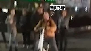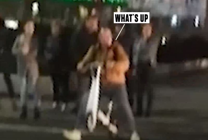 Aflat la trecerea de pietoni, What’s Up pare că e la un pas de a produce un incident nefericit. Cu toate că semaforul arată culoarea roșie, artistul încearcă să forțeze traversarea. Doar norocul face ca acesta să nu fie lovit în plin de un autobuz.