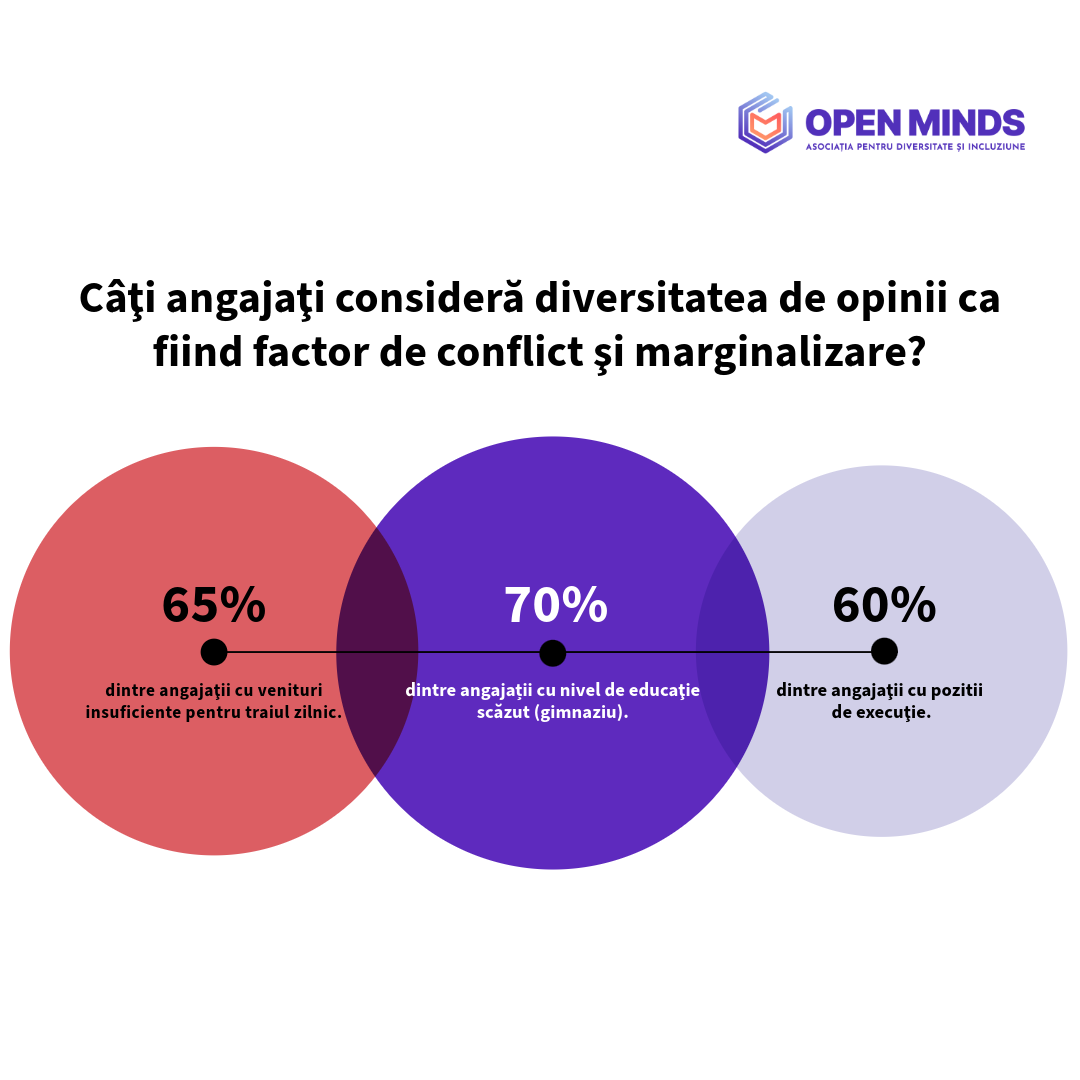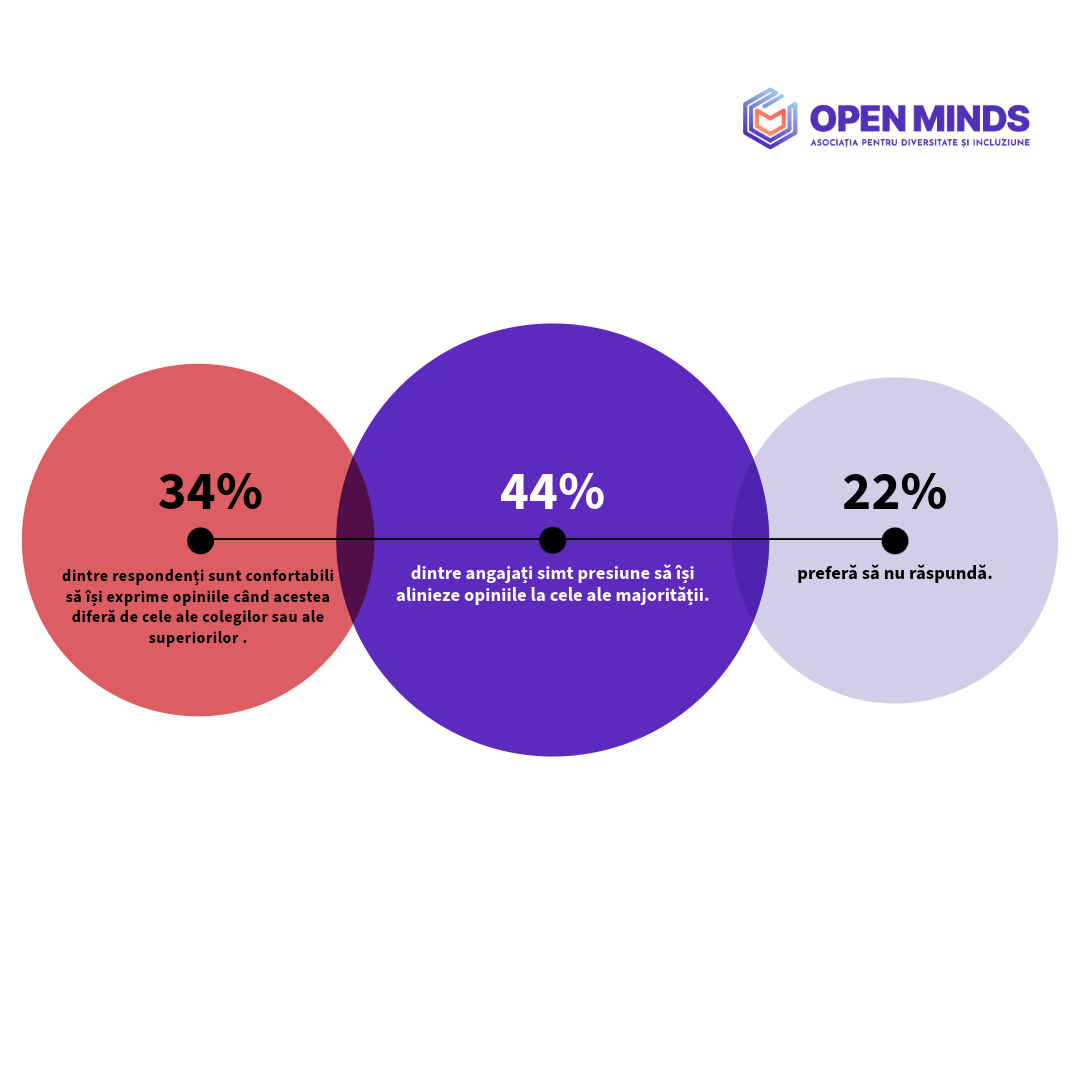 Studiul sugerează faptul că motivul din spate se regăsește în percepția românilor despre diversitatea de opinii: aproape 40% dintre angajați cred că opiniile diferite duc la conflict și marginalizare în spațiul profesional.