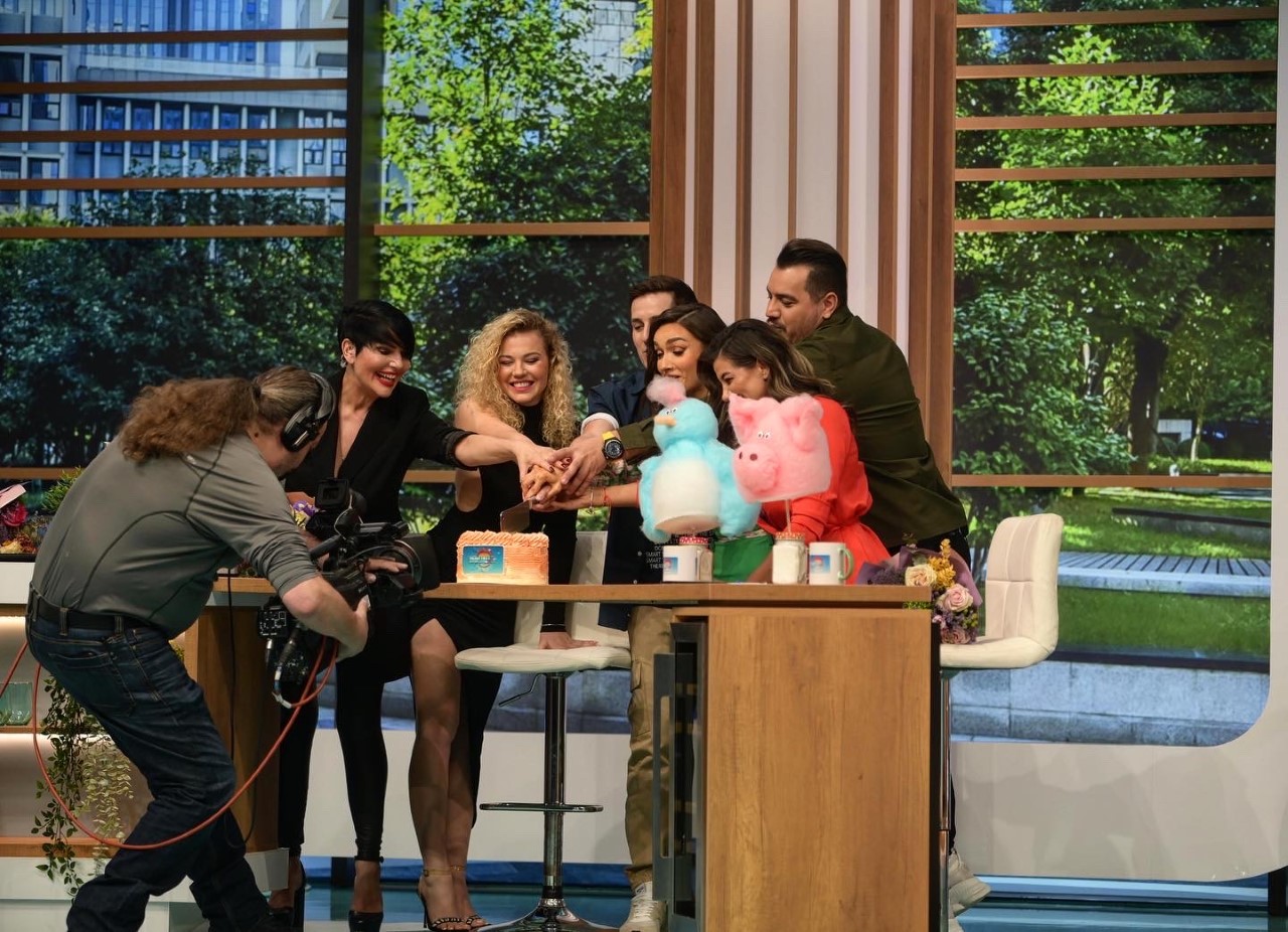 Prima ediție a matinalului “Dimineața cu noi” a debutat în forță, Busucu, George Tănase, Viviana Sposub și Patrizia Paglieri au făcut atmosfera de zile mari în platoul celui mai fresh show al momentului! Au ras cu poftă, au dansat, și-au primit invitații cu buna-dispoziție și nu au ratat bucatele delicioase preparate de Patrizia special pentru această prima ediție a emisiunii. Imediat după ce au ieșit din diect, prezentatorii emisiunii au fost aplaudați la scenă deschisă de colegii de platou, de întreaga echipa de producție. Tortul special pregătit pentru aceste momente a fost și el în centrul atenției, un răsfăț dulce, binemeritat de energica echipă a matinalului.