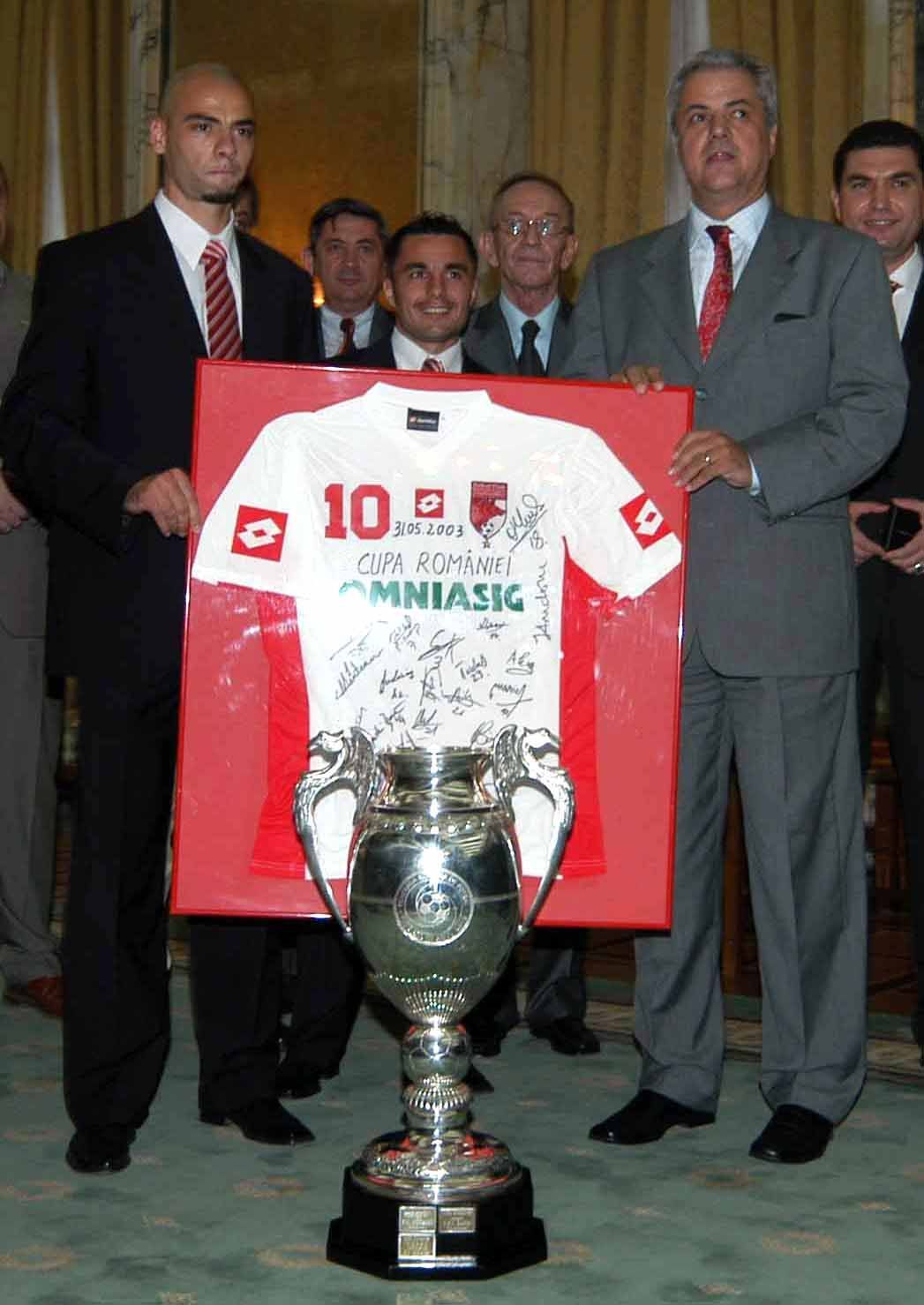 Imbracat la costum si foarte emotionat, Kirita i-a inmanat politicianului un tricou inramat pe care se semnasera toti jucatorii din Stefan cel Mare, dupa care a stat cuminte la poza oficiala,