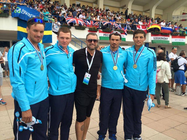 Botezatu alaturi de Condrat (al doilea din stanga) si de colegii din lotul de kaiac Condrat, pe podium In timp ce colegii sai sportivi incearca sa faca performanta la Jocurile Olimpice de la Rio, Petre Condrat se multumeste sa faca initiere in kaiac-canoe cu pustii de pe lacul IOR. Cu putin timp inainte de startul marii competitii, majoritatea componentilor lotului national a fost depsitata dopata cu Meldonium, iar Federatia Internationala a luat masuri exceptionale pentru Romania: interzicerea sportivilor sportivilor calificati la Jocurile Olimpice sa participe la aceasta competitie si interzicerea pe un an din toate competitiile. Acum, Petre Condrat s-a retras pe lacul IOR