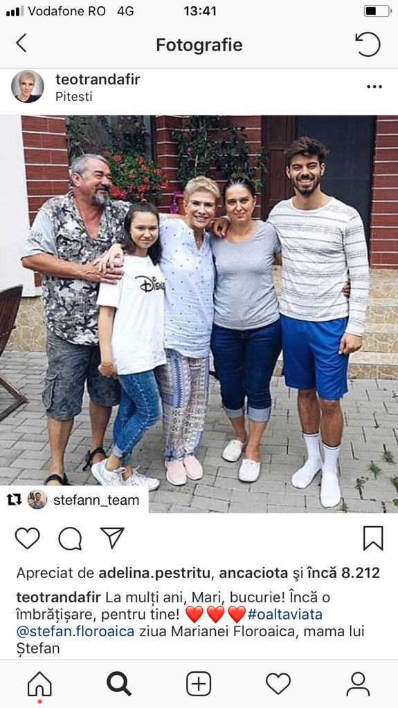 Teo, dar si Stefan au postat pe retelele de socializare fotografii din ziua cu pricina. Teo i-a transmis mamei lui Stefan" La multi ani, Mari, bucurie! Inca o imbratisare pentru tine!", iar Stefan a descris fotografia cu doua cuvinte "In familie." Teo a mai spus ca "Suntem fericite sa acem parte din familia aceasta de vis, iar casa voastra sa ne fie casa".