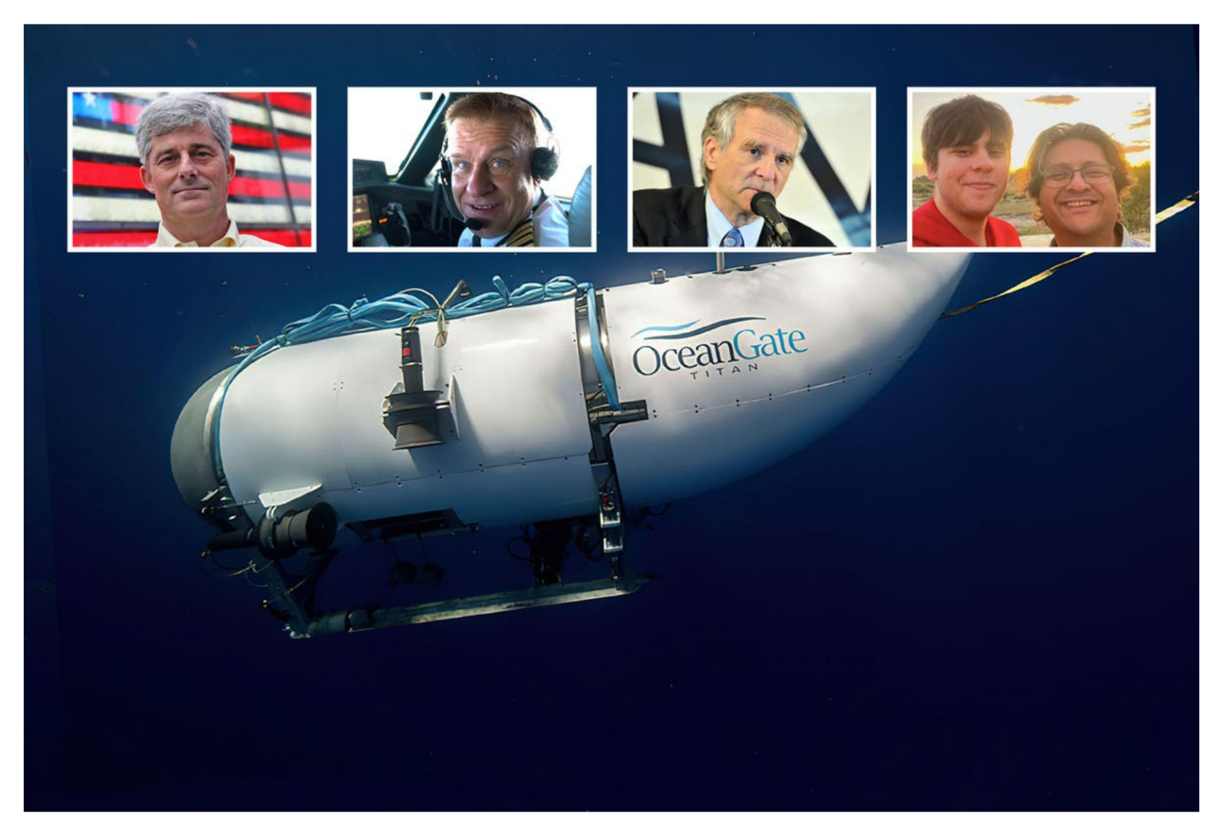 La bordul navei se aflau Stockton Rush, directorul executiv al OceanGate, în vârstă de 61 de ani, miliardarul britanic Hamish Harding, în vârstă de 58 de ani, expertul în Titanic Paul-Henri Nargeolet, în vârstă de 77 de ani, miliardarul britanic-pakistanez Shahzada Dawood, în vârstă de 48 de ani, și fiul său de 19 ani, Suleman.