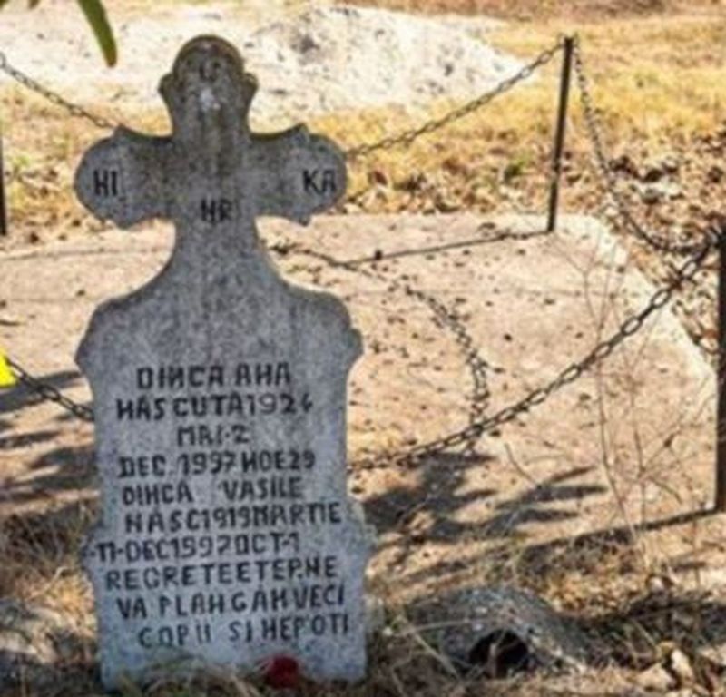 Gheorghe Dincă a scris un mesaj ce conține o sumedenie de greșeli gramaticale pe crucea de pe mormântul părinților săi.