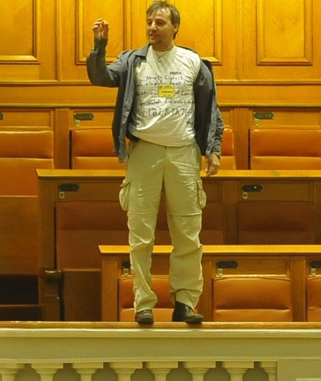 Adrian Sobaru a socat opinia publica pe 23 decembrie 2010, atunci cand s-a aruncat in gol de la balconul Parlamentului.