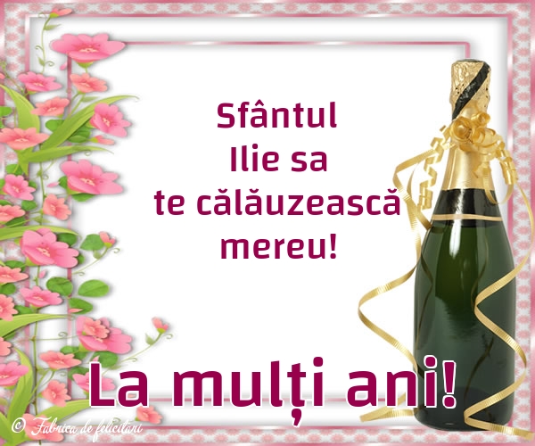 „Cu ocazia sărbătorii Sfântului Ilie, îţi doresc o oră de linişte, o zi senină, o săptămână de bucurii, o lună de împliniri, un an de prosperitate, un veac de sănătate, fericire şi iubire. La mulţi ani!”