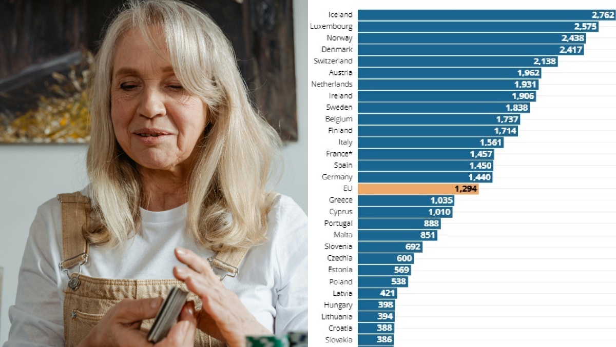 Media pensiei din UE era de 1 224 euro, conform unei analiza Euronews pe baza datelor oferite de Autoritatea Europeană pentru Asigurări și Pensii Ocupaționale.
