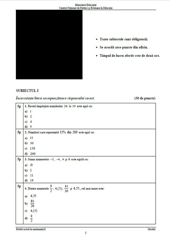 1 din 8 | Posibile subiecte Evaluarea Națională 2022