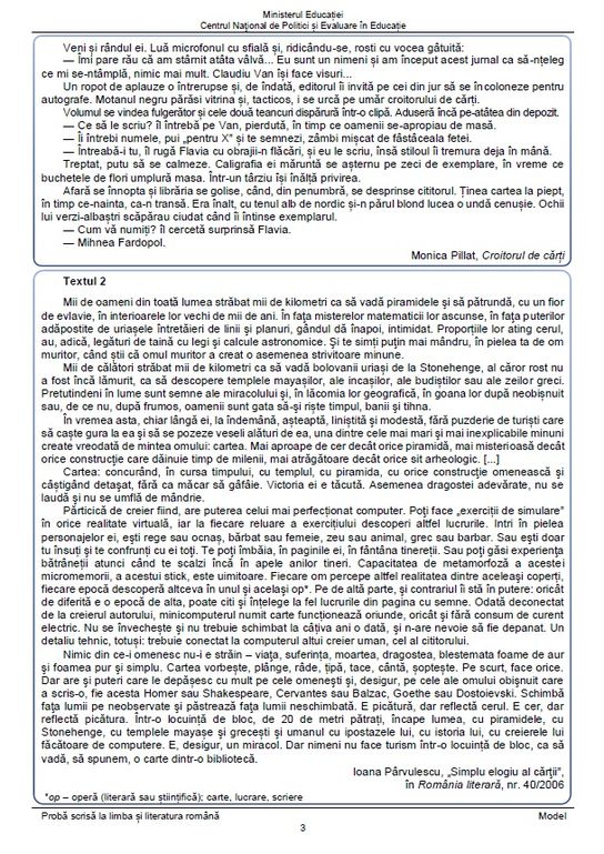 Mai multe modele de subiecte pot fi consultate pe site-ul Ministerului Educației, chiar aici .
