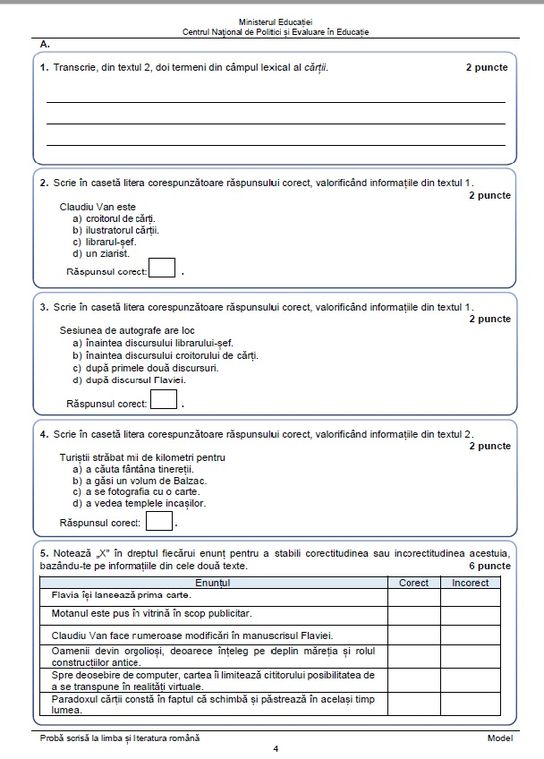 4 din 8 | Limba și Literatura Română.