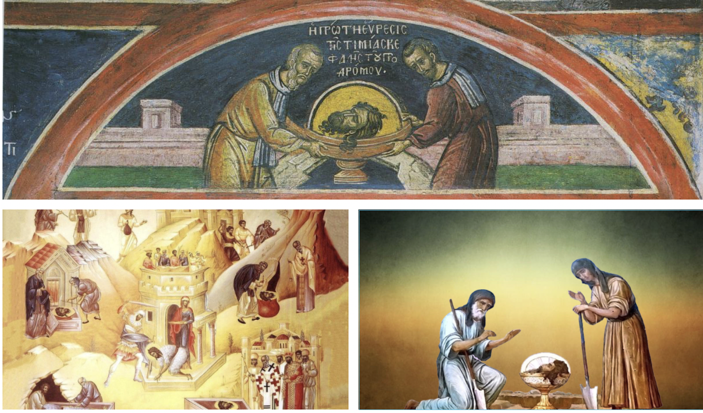 Capul Sfântului Ioan Botezătorul a stat îngropat în acel loc până în vremea Sfinţilor Împăraţi Constantin şi Elena, când prin doi monahi, a ajuns la Emesa, în Siria, la un olar.