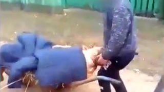 O femeie, in varsta de 40 de ani, din Romania, a fost filmata in timp ce era moarta de beata si carata cu roaba de unul dintre cei trei copii ai sai.