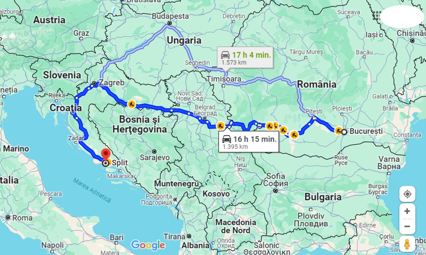 O altă opțiune relativ ușor accesibilă, chiar și cu mașina, este litoralul din Croația. Drumul din Capitală până la Zadar sau Split se face cu mașina în aprox. 17 ore.