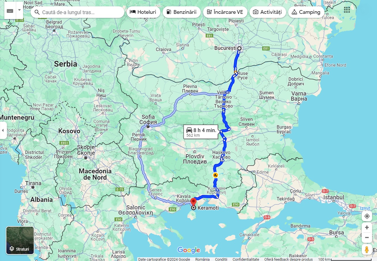 Cel mai scurt drum România- Halkidiki are 750km din București. Timp estimat: 9 h 30 min.