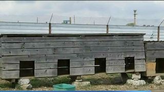 Paznicul vorbeste incontinu la telefon cu superiorul sau care a primit ordin sa nu ne lase sa filmam in adapost.